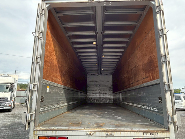 11.9mの超ロングボディに幅249cm・高さ261cmの圧巻の積載スペース。重量物・長尺物の大量輸送にも余裕で対応できる、積載効率の高い仕様です。
